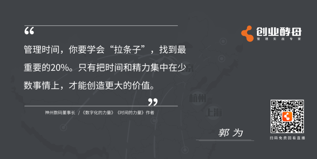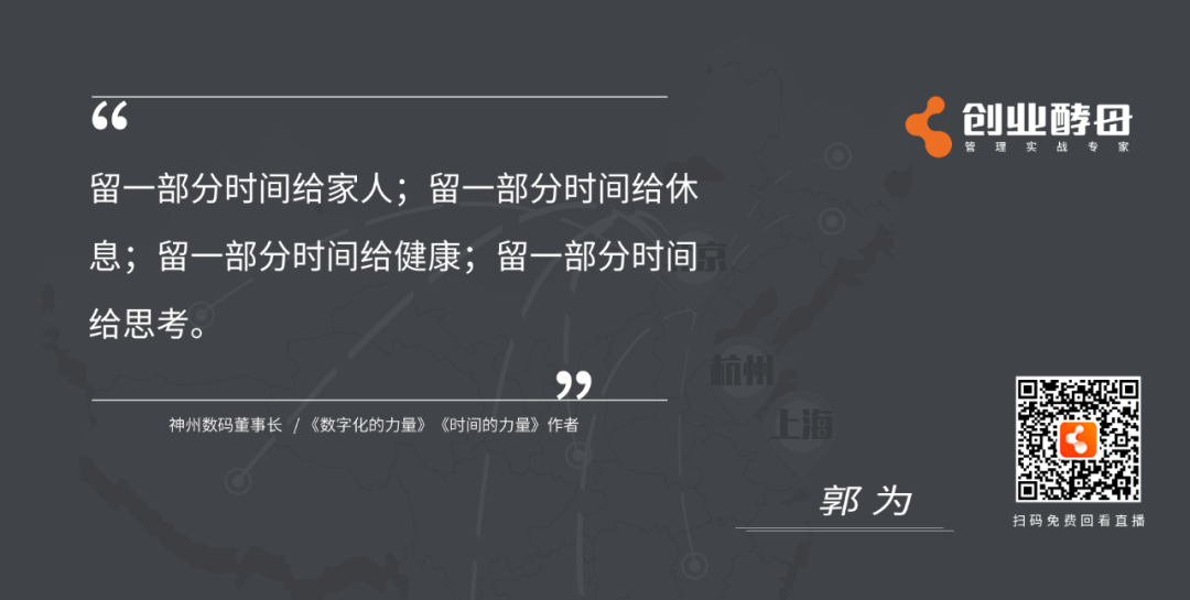 导语:时间管理,之于企业,之于人生有什么意义?如何做好时间管理?如何把时间花在最重要的战略管理上?如何以时间管理打造组织领导力?……在5月16日,九游ninegame与创业酵母联合举办的《时间的力量——企业时间管理实践与思考》直播对谈中,神州信息董事长、《时间的力量》作者郭为与创业酵母创始人张丽俊围绕“时间管理、战略管理、组织变革、团队管理、领导力”等话题深度探讨,以下为直播内容精选。