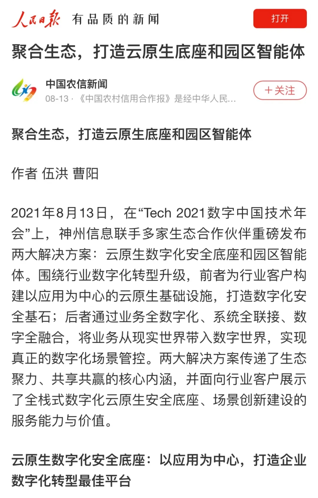 神州信息聚合生态,打造云原生底座和园区智能体